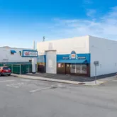 • Two commercial buildings connected by a fenced courtyard-style parking lot