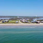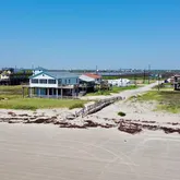- Directions: From the Hwy 332 coming across the bridge to the island, turn left at the traffic light. Follow Bluewater Hwy down until almost the water tower, then turn right onto Saltgrass Ave. The home is on the beachfront on the right hand side.