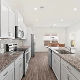 - Kitchen Features: Breakfast Bar, Cabinets White, Eat-in Kitchen, Kitchen Island, Pantry, Solid Surface Counters, Stone Counters, View to Family Room