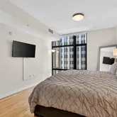 Experience unrivaled amenities at this full-service, pet-friendly building. Residents enjoy 24-hour front desk security and a secure indoor garage. The signature rooftop is a true urban oasis, providing 360° panoramic views of the city, a sparkling swimming pool, gas grills, and ample dining and entertaining areas.