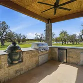 - Exterior Features: Attached Grill, Built-in Barbecue, Covered Patio/Porch, Lighting, Outdoor Living Center, Private Yard