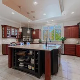 Outside, the home continues to amaze, with a resort-style swimming pool and hot tub that are perfect for basking in the sun and enjoying summer days with family and friends. The partially covered patio is complete with a built-in gas grill and beverage cooler, making it the ideal spot for hosting outdoor gatherings. And with a four-car garage in addition to an expansive driveway, there's plenty of space for both your cars and your storage needs.