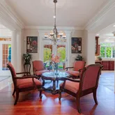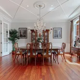 The gourmet kitchen is an absolute chef's paradise, featuring top-of-the-line appliances, custom cabinetry, and a spacious island that is sure to be the hub of your culinary creations. The adjacent breakfast nook offers a charming and cozy spot for casual meals, while the formal dining room is an elegant and refined space ideal for hosting memorable dinner parties.