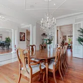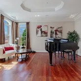 As you step into the grand foyer of this stately home, you'll immediately be struck by the timeless elegance and luxury of the formal living room. With its soaring ceilings, beautiful wood floors, and grand windows,