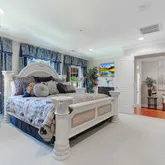 The lower level is a true entertainer's paradise, featuring a home theater area, game room, and bar area that is simply perfect for hosting parties and get-togethers. There's even an additional bedroom and bathroom, ideal for guests or an au pair.