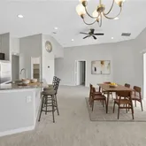 - Interior Features: High Ceilings, Kitchen/Family Room Combo, Living Room/Dining Room Combo, Open Floorplan, Solid Wood Cabinets, Stone Counters