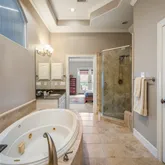 - Interior Features: Double Vanity, Granite Counters, High Ceilings, Jetted Tub, Kitchen Family Room Combo, Separate Shower, Tub Shower, Walk In Pantry, Ceiling Fans, Programmable Thermostat