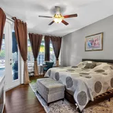 - Interior Features: Ceiling Fan(s), Crown Molding, Eating Space In Kitchen, High Ceilings, Open Floorplan, Primary Bedroom Main Floor, Solid Surface Counters, Split Bedroom, Walk-In Closet(s), Window Treatments