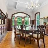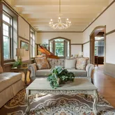 - Amenities: Alarm System-Security, Attic Storage, Breakfast Bar, Built-In Bookcase, Built-in Desk, Cable Available, Ceiling-9+, Ceiling Fan(s), Closet(s) Walk-in, Detector-Smoke, Disposal, Dryer Hook Up Electric, Eat-In Kitchen, Foyer Entry, Garage Door Opener, Landscaped, Natural Woodwork, Pocket Doors, Porch Covered, Porch Enclosed, Workshop, Formal Dining Room, Great Room, Custom Cabinetry