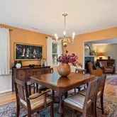 A lovely foyer with warm hardwood flooring greets you and you already feel at home. The formal living room’s stone fireplace invites you to have a seat and relax and dream of cozy winter evenings in front of the fire. You continue to the spacious dining room with its deep terracotta walls and imagine it filled with the laughter of family and friends at your famous dinner parties. You won’t be able to get out of hosting Thanksgiving this year with room for at least 12 guests.