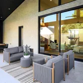 - Exterior Features: Built-in Barbecue, Covered Patio/Porch, Garden(s), Rain Gutters, Lighting, Outdoor Kitchen, Permeable Paving, Private Yard