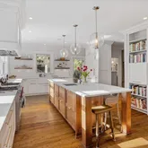- Interior Features: Bathtub Only, Bookcases, Built-in Features, Pantry, Cathedral Ceiling(s), Cedar Closet(s), Ceiling Fan(s), Crown Molding, Double Vanity, Dual Closets, Eat-in Kitchen, Entrance Foyer, High Ceilings, High Speed Internet, Kitchen Island, Quartz Counters, Recessed Lighting, Separate Shower, Shower Only, Smooth Ceilings, Soaking Tub, Storage, Walk-In Closet(s), Walk-In Shower, Water Closet, Wet Bar, Wired for Sound