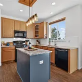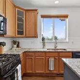 - Room Description: Granite countertops, gas range, black appliances, pantry, wood floors