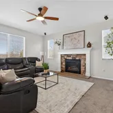 - Room Description: Open concept, fireplace, carpet floors, ceiling fan