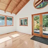 - Living Room Features: Cathedral/Vaulted, Deck Attached, Open Beam Ceiling