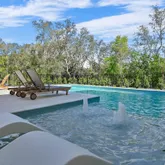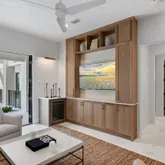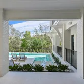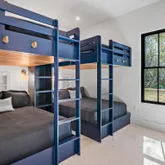 Upon entering the first floor, a captivating entrance leads you into an entertainment room that seamlessly connects to a lush outdoor oasis. This outdoor sanctuary boasts a grilling station with a vent hood, a generous L-shaped heated pool, a pool bathroom, an outdoor shower, expansive shellstone tile decks, and custom landscaping by Chad Hortoncreating the perfect backdrop for entertaining. Additionally, on the first floor are three bedrooms with ensuite bathrooms. Among them is a bunk room with four full-size beds.