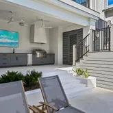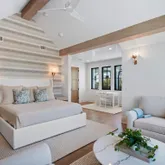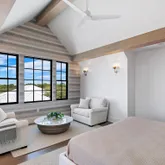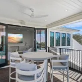 The entire third floor is dedicated to an opulent primary suite, offering his and her closets, a dressing area, an adjoining sitting room, a cocktail bar, and a private office. A spacious covered porch on this level provides an ideal vantage point for enjoying breathtaking sunsets and Gulf views.