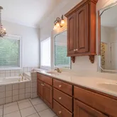- Interior: Central Vacuum, Double Vanity, High Ceilings, Master On Main Level, Separate Shower, Soaking Tub, Split Bedroom Plan, Tile Bath, Tray Ceiling(s), Walk-In Closet(s)