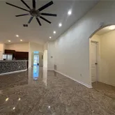 - Interior Features: Ceiling Fan(s), High Ceilings, Open Floorplan, Solid Wood Cabinets, Split Bedroom, Stone Counters, Thermostat, Walk-In Closet(s)