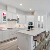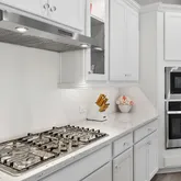 The gourmet kitchen is a showpiece for both chefs and entertainers, featuring elegant glass-door cabinetry, a spacious pantry with matching glass doors, an upgraded dishwasher and and upgraded gas cooktop with wall oven.