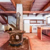 - RoomDescription: Hardwood floors, wood burning stove, door to porch