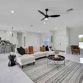 - Interior Features: Ceiling Fan(s), High Ceilings, Open Floorplan, Primary Bedroom Main Floor, Solid Surface Counters, Stone Counters, Walk-In Closet(s)