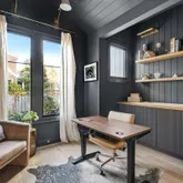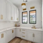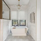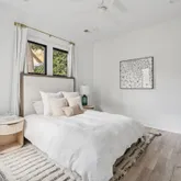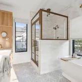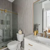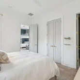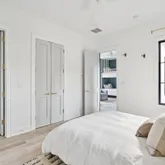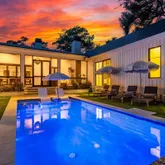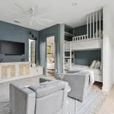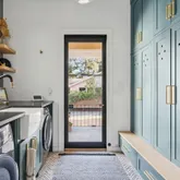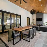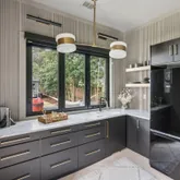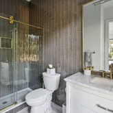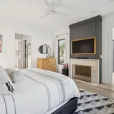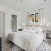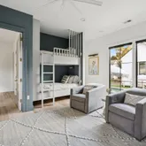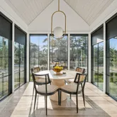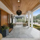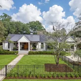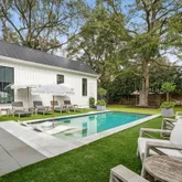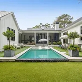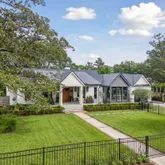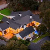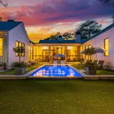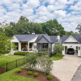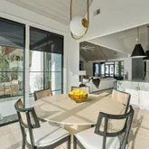 A stunning dining space filled with natural light and automatic shades creates the perfect setting for both everyday living and elevated gatherings. Out back, the screened porch overlooks the expansive backyard, ideal for morning coffee, evening cocktails, and everything in between. The home's layout is as intentional as it is elegant: the primary suite occupies its own private wing, living and entertaining spaces anchor the heart of the home, and additional bedrooms are thoughtfully placed in a separate wing to ensure privacy and quiet retreat. Each bedroom features its own en-suite bath, while two private offices (not included in the bedroom count) provide beautifully designed, dedicated workspaces. Fully custom cabinetry extends throughout the bathrooms, reinforcing the home's cohesive, high-end design language.