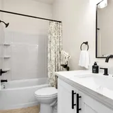 - Interior Features: Breakfast Bar, High Ceilings, Kitchen Island, Kitchen Family Room Combo, Quartz Counters, Tub Shower, Ceiling Fans, Kitchen/Dining Combo, Programmable Thermostat
