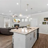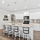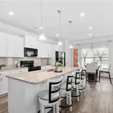 - Kitchen Features: Breakfast Bar, Cabinets White, Kitchen Island, Pantry, Stone Counters, View to Family Room