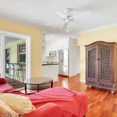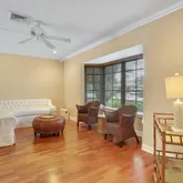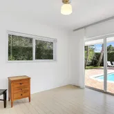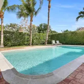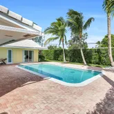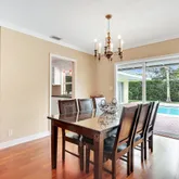 Fabulous Palm trees ringing the pool and great open yard around the pool - yard is fenced. Sliding glass doors 'pocket' so that the house can be opened up during the cool weather months. Second bathroom is a cabana bath with access to the pool/patio. There are 5 windows that are not impact and there are shutters for them and other windows (from before the impact glass was added)