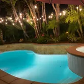 - Pool Description: In Ground, Waterfall, Salt/Saline, Safety Fence, Private