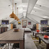 Multiple outdoor living spaces, redwood decks, and lush, mature landscaping create a true indoor-outdoor experience, complete with integrated lighting and sound. A separate 6-car garage with lofted studio is primed to become your own private club—complete with DJ system, TVs, and ambient lighting.