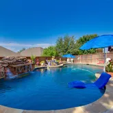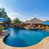 expansive backyard oasis, featuring a sparkling pool that invites you to cool off on hot Texas days or enjoy evening