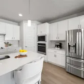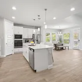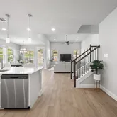 Inside, a thoughtful four-bedroom layout suits today’s lifestyle. The primary suite on the main level feels like a retreat, offering peaceful views, abundant natural light, & a spa-inspired en suite bath with dual vanities, soaking tub, & a spacious walk-in closet. A dedicated office (or optional fourth bedroom) provides the flexibility to work from home. Upstairs, you’ll find a secondary living space ideal for a playroom or media room plus two large bedrooms with walk-in closets & a shared full bath. The open-concept kitchen brings everyone together, featuring a generous island, corner pantry, & stainless-steel appliances. Overlooking the backyard, the dining and living areas flow seamlessly for effortless entertaining & everyday comfort.