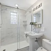 - Bathroom1 Features: Bathroom - Tiled With Shower Stall,Closet - Linen,Flooring - Laminate,Bidet,Lighting - Overhead,Pedestal Sink