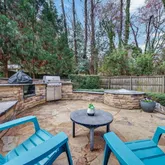 Outdoor living truly shines here. Large sliding doors lead to a screened porch, creating a seamless connection to the backyard retreat. Just beyond, enjoy a deck and stone outdoor kitchen, perfect for hosting friends, weekend grilling, or simply unwinding outside. The sprawling backyard features a gorgeous mature tree that practically begs for a swing -- the kind of setting that makes spring and summer in North Carolina feel magical.