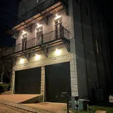 Outdoor living shines with upper and lower wrap-around New Orleans-style balconies with custom iron railings—plus a rooftop terrace outfitted with natural gas hookup, water access, and exterior electric for unforgettable entertaining. The exterior is framed by mature landscaping including boxwood hedging in a keyhole design and established crepe myrtles, supported by an irrigation system with controller. Two oversized carriage house-style garages feature wood overlay doors, new motors (2023), attic storage, EV charging, and a dedicated garden room with washer/dryer hookup and new stainless utility sink. Additional features include: