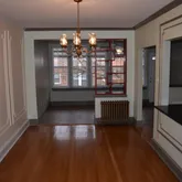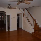 12-month minimum lease...Remarkable detail in this classic rowhome. 3 bed rooms and 2 and a half baths. Beautiful hardwood floors throughout, custom trim woodwork in living room and dining room with double column arched walkway separating living and dining. Upgraded kitchen with s/s appliances. Spacious light-filled breakfast nook with attached rear-deck. Sunroom at back of house, upstairs. Large finished family room in walk-out basement. One car garage with room for second car in driveway. Lease Terms: