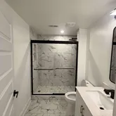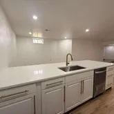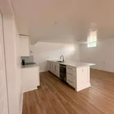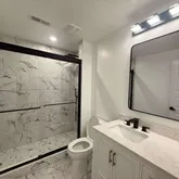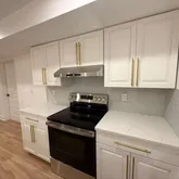 Welcome to this brand-new basement apartment with a bright, open layout and modern finishes throughout. Luxury vinyl plank flooring extends across the space, providing a durable and stylish foundation. The kitchen features white shaker-style cabinets with gold-toned bar pulls, white quartz countertops, and a light gray subway tile backsplash. Stainless steel appliances create a functional and efficient space for cooking and entertaining....Brand-New Luxury Basement Apartment with Private Entrance & Parking