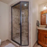 - Room Description: Remodeled with light tile and glass accents