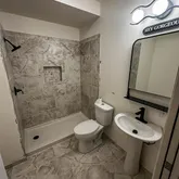 - Brand-new walk-in tile shower in the apartment