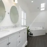 - Primary Bath: Double Sinks, Floor - Ceramic, Whirlpool, Skylight, Shower Stall, Marble