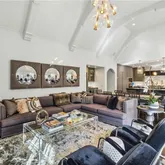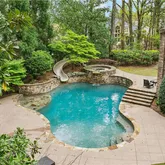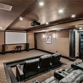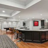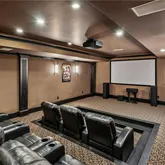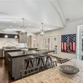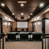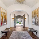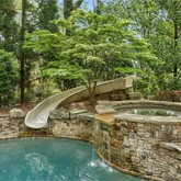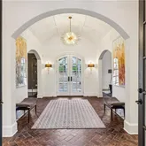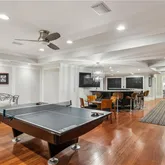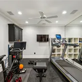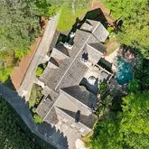 bath. Indulge in designer Porcelanosa vanities, a freestanding soaking tub, an oversized double-head, marble-tiled shower, and a custom walk-in dressing room, newly completed in 2023 with floor-to-ceiling custom cabinetry. Upstairs, two distinct wings offer both privacy and flexibility, boasting four spacious bedrooms—each with en-suite baths and custom closets—as well as versatile bonus room spaces ideal for playrooms, offices, labs or lounges. The finished terrace level is designed for both relaxation and recreation, complete with a second full kitchen featuring SubZero appliances, a state-of-the-art digital media room with THX projector and new theater seating, a fitness studio, custom home office, salon with built-ins, guest accommodations, and abundant storage throughout. Step outside to your own private resort-style oasis. Enjoy a covered porch with a fireplace, a charming stone courtyard with a fountain, an expansive patio, and lush landscaping throughout. The heated pool—with a removable child safety fence—and hot tub offer the perfect setting for year-round enjoyment. Additional highlights include a Crestron whole-home automation system (updated in 2019), designer lighting throughout, invisible pet fencing, a 3-car garage with built-in cabinetry and non-slip flooring, an extra parking pad for 3+ vehicles, and a circular driveway. The grounds are fully irrigated, featuring seasonal blooms and mature trees that enhance the home's natural beauty and privacy. This extraordinary estate offers impeccable design, exceptional functionality, and unmatched privacy—just minutes from top-rated schools, parks, medical centers, shopping, and dining.