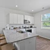 This home features the Curtis is one of our newest cottage floorplans designed for efficient living and comfort. Upon entering the home, you are greeted by a spacious living area which flows directly into your kitchen complete with granite counter tops, sleek white cabinetry, and modern stainless-steel appliances. Continuing from the living area, the two commodious secondary bedrooms are conveniently located next to a spacious full bath and laundry room. The primary suite at the back of the home boasts a walk-in closet, shower, and vanity complete with quartz countertops. Outside the home, you'll find your own slice of paradise with your covered front porch and rear patio overlooking your beautiful, wooded backyard. Square footage dimensions are approximate. The photos you see here are for illustration purposes only. Interior and exterior features, options, colors and selections will differ. Please reach out to our sales agents for options.