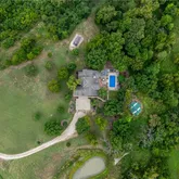 Welcome to your dream home! This stunning property offers an impressive 5 bedrooms and 5 baths, spread across a generous 6,264 square feet. Nestled on a sprawling 13.3 acres, this residence boasts a picturesque pond and a large in-ground pool, perfect for outdoor entertaining and relaxation. Enjoy the luxury of backing up to a golf course, providing both scenic views and recreational opportunities. The primary bedroom is conveniently located on the main level,...Golf Course home with acreage and pool
