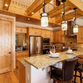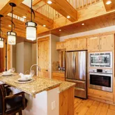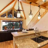 - Room Description: Granite countertops, tiled backsplash, SS appliances, exposed beams, open to great room