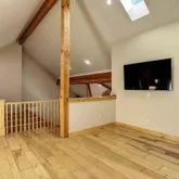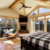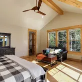 - Room Description: Gas FP, deck access, vaulted ceilings, exposed beams