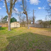 Tucked beneath beautiful mature trees, this cozy and updatd home offers comfort and convenience in one inviting package. The primary bedroom opens directly to the backyard—perfect for morning coffee or evening relaxation. Inside, you’ll find updated finishes throughout, including ceramic tile and hardwood floors, ceiling fans, and mini blinds. The bright kitchen comes fully equipped with a refrigerator, stove, and dishwasher, plus a convenient pantry and laundry room just off the kitchen. Enjoy year-round comfort with brand-new central air and heat in this total-electric home. Outside features include a covered porch, large storage building, and a spacious, beautifully shaded yard ideal for outdoor living. Conveniently located with easy access to I-45 and Hwy 75, and just minutes from schools, shopping, and dining. A perfect blend of charm, updates, and location—this one feels like home.