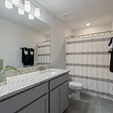 Upstairs, you’ll find three additional bedrooms, a full bath, and a wide-open loft—perfect as a bonus room, playroom, or media space. The kitchen is a showstopper with stone-gray cabinetry, granite countertops, stainless steel appliances, and a white tile backsplash. Thoughtful storage throughout the home ensures everything has it's place.