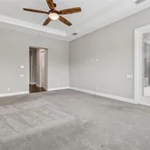 - Interior Features: Ceiling Fan(s), Coffered Ceiling(s), Crown Molding, Eating Space In Kitchen, Living Room/Dining Room Combo, Open Floorplan, Primary Bedroom Main Floor, Solid Surface Counters, Thermostat, Tray Ceiling(s), Walk-In Closet(s), Window Treatments